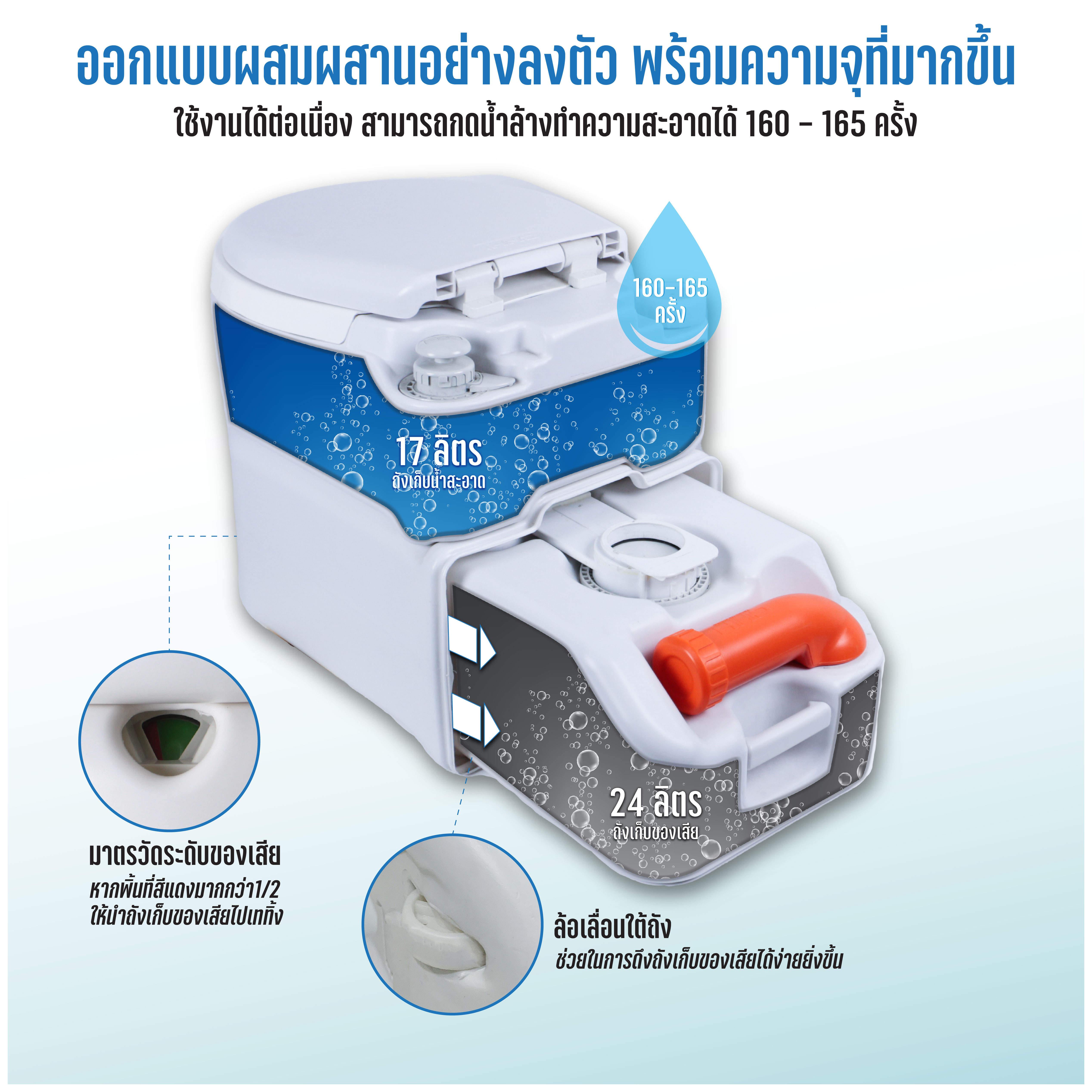 ความจุถังเก็บของเสีย : 24 ลิตร