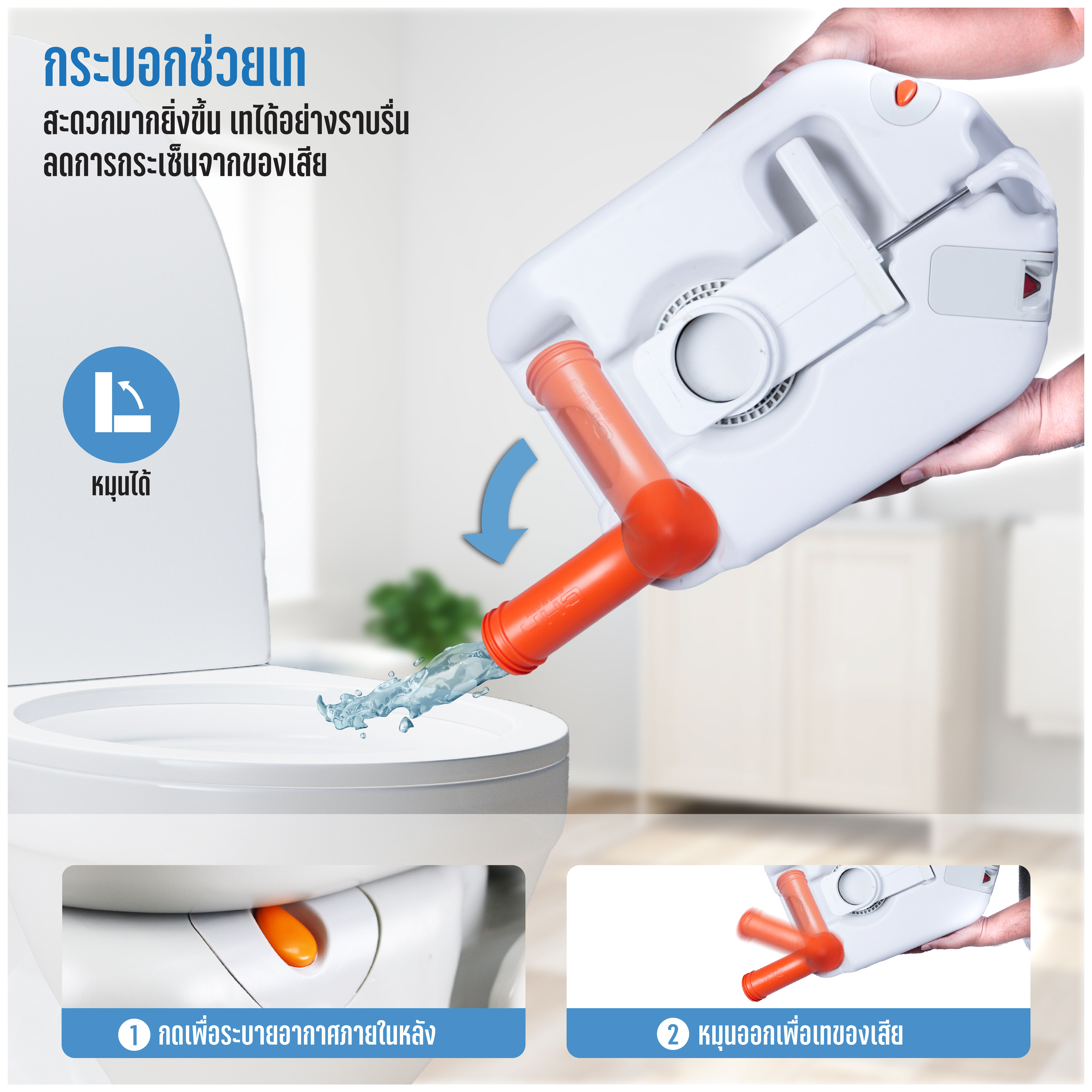 - ช่องเทของเสียแบบกระบอก หมุนทิศทางได้